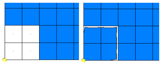 Figure 1. Detach Elements. In the first image, elements are selected. In the second image, the elements are detached and offset. The nodes defining the corner of the component were not moved.