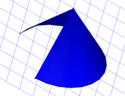 Figure 3. . This example uses a top radius of 0.5, base radius of 3, height of 4, start angle 45, end angle 320, and axis ratio 1.0.