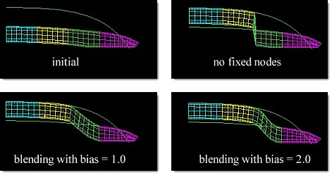 Note: Blending will affect unattached elements and elements which lie beyond the fixed nodes.