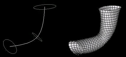 Figure 6 and Figure 7 show a mesh created on a surface interpolated from a series of cross sections along a line using the cyl about line method (Figure 6) and the tube about line method (Figure 7). Notice the smooth transitions between the varying sections.