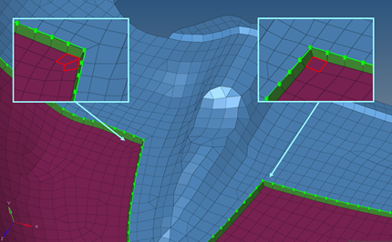| washer preservation | Select how to modify washer elements close to seams.![]() Figure 15. Washer Elements Example. Washer elements are colored green.