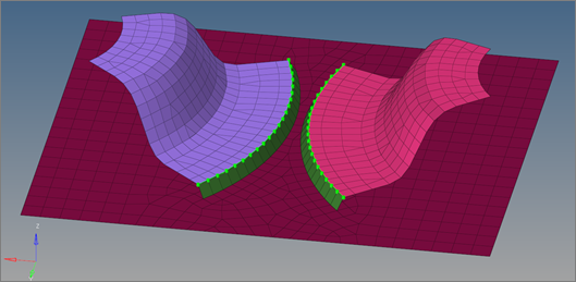 Use the Edges panel to find the free edges in a group of shell elements, find "T" connections in a group of shell