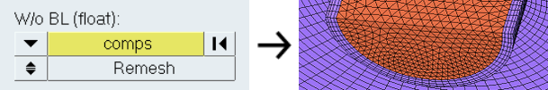 generate boundary layers. If a refinement box includes boundary shells selected via the With BL (float) selector and the remesh option is used, the surface elements are remeshed using the element size assigned to the refinement box. |