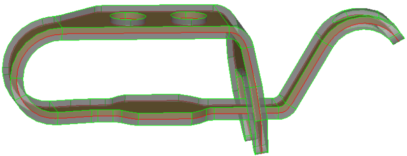Use the Auto Midsurface subpanel to extract the midsurface of a more complicated group of surfaces that represent a solid part in one step.