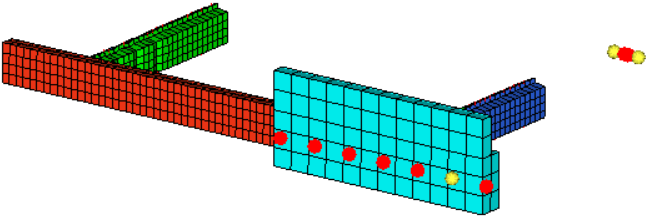 Use the Spotweld panel to create 1D elements to connect different parts.