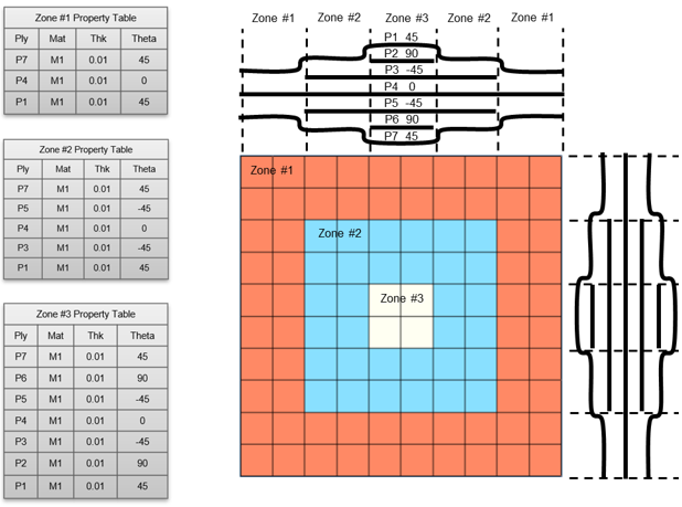 Ply-based modeling provides an FEA methodology which is consistent with the composite manufacturing process. The ply-based modeling entities replace, and can generate, typical solver zone-based composite properties.