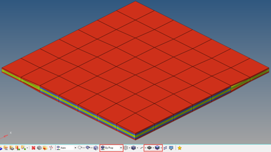 Ply thickness, layers and angles can be visualized with the 2D Detailed Thickness and Composite Layers display settings in the bottom right of the graphics area. For details see Visualization.