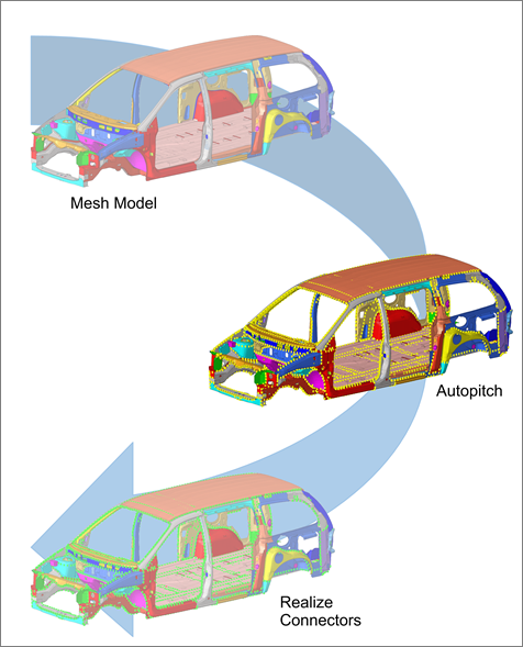 Figure 1. . Starting with a CAD model, the Autopitch tool creates unrealized connectors