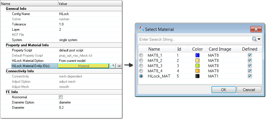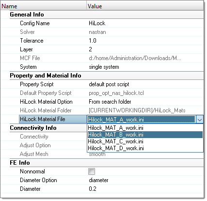 - This material will be assigned to the PBAR cards, and can be found in the following folder of the installation directory: [hm_scripts_dir]/connectors/HiLock_Mats.