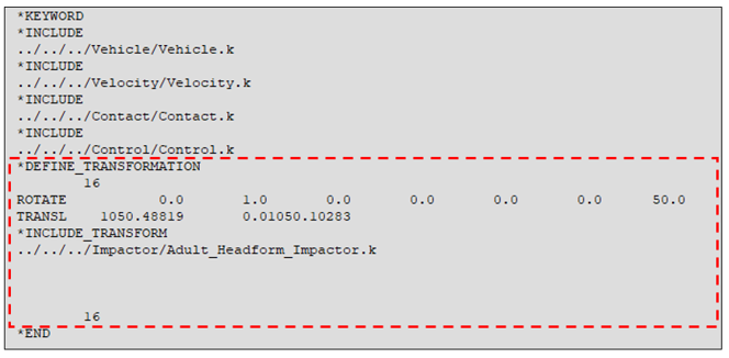 - The impactor include file is defined as an *INCLUDE_TRANSFORM and the