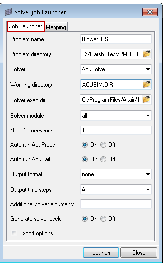 The Solver Job Launcher enables you to execute AcuSolve jobs directly from Engineering Solutions.
