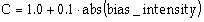 In exponential biasing, the sizes of the intervals grow geometrically, progressing along the edge, with each successive interval being a constant factor larger than the previous. That factor is 1.0 plus 1/10 of the absolute value of the biasing intensity. This formula was chosen so that an intensity of zero will still represent no biasing, and convenient values will fall in the range [0,20]. Negative biasing intensities just reverse the edge, placing the smaller elements at the end instead of the beginning.