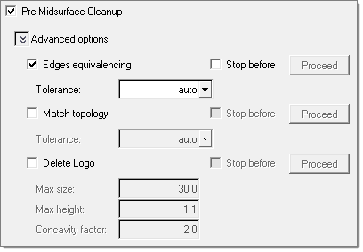 Select Pre-Midsurface Cleanup to define pre-midsurface