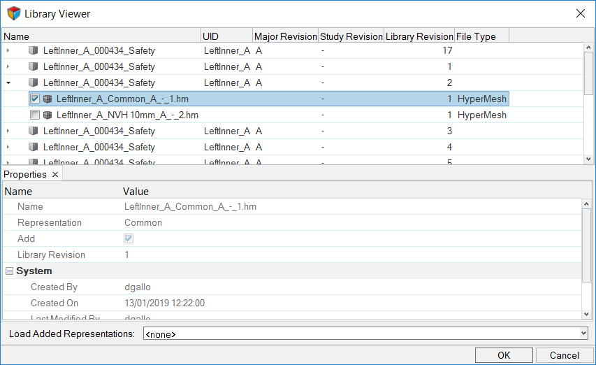 Part representations can be loaded from your current HyperMesh session or from the Part Library.