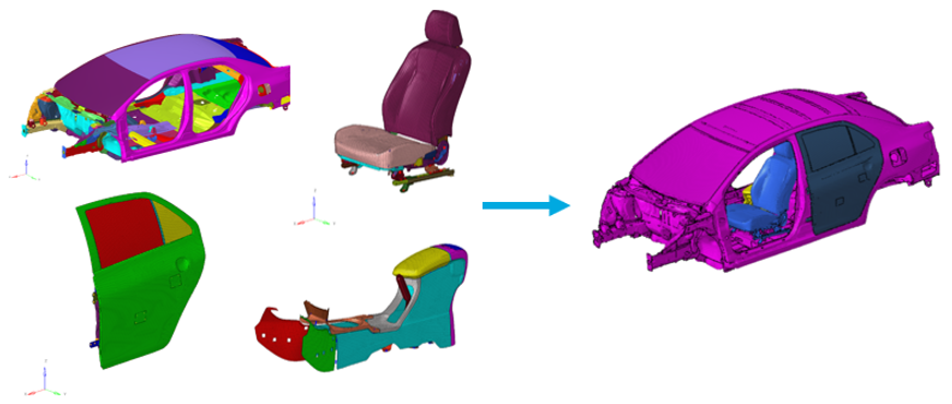 During the model build and assembly process, you would use the Part Browser to go from CAD to CAE a model of subsystem. Then, you would use the Subsystem Browser once each subsystem has been assembled to build a system-level model.