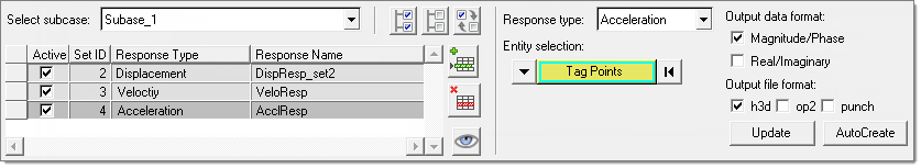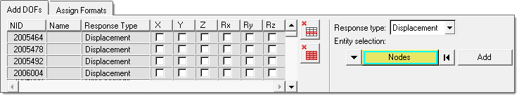 Select response DOFs by clicking Response