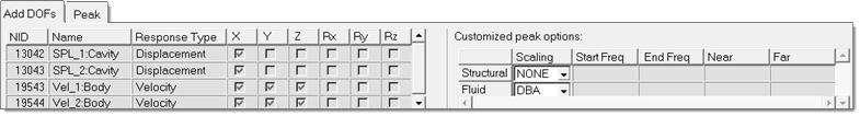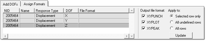 For DOF based definition, once the DOF is selected, select a subcase row