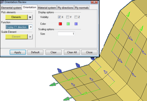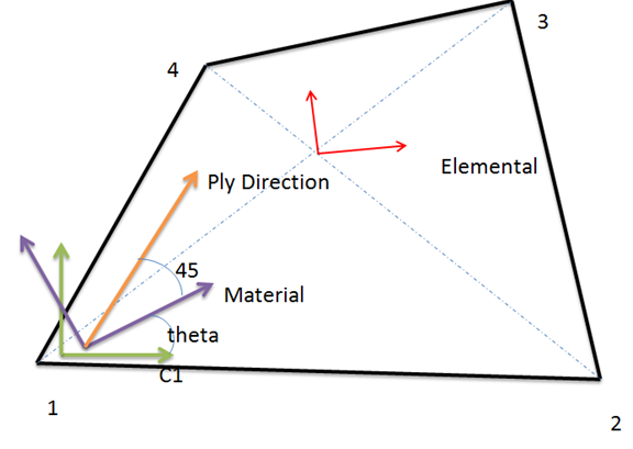 Elemental systems are dependent on the solver type. For example, for Nastran and for quad elements the X axis is determined using the bisector of the diagonal line.