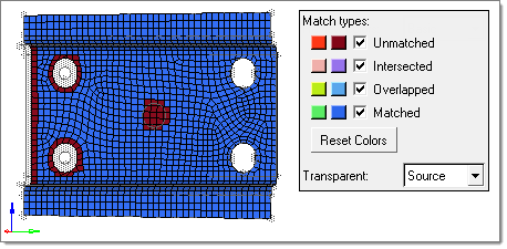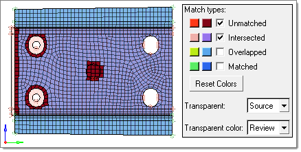 both the source (left) and target (right) entities.To control which match types display in the graphics area, select the check box next to each match type you would like to display. If any entity is part of two match types, then the "worse" type takes precedence.
