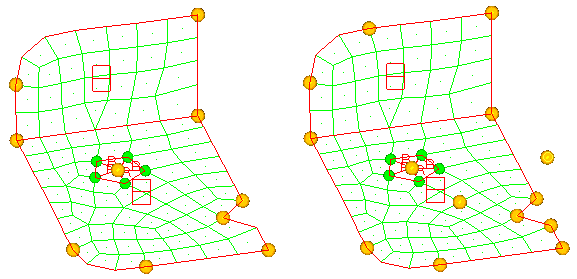 elements and their 2D domains will be regenerated the next time you enter or exit a HyperMorph panel or the Delete panel. The shell elements on the face of