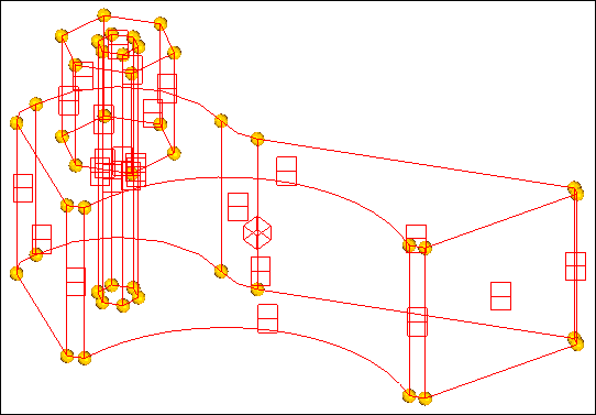model represents many parts, each with numerous features such as holes and edges, and connected together using 1D