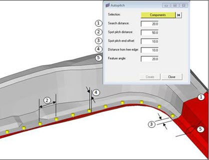 - Detects the spot welds that are connecting the non-parallel flanges.