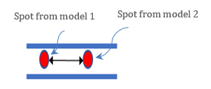 - Position (Coordinates) difference between spot weld 1 and spot weld 2