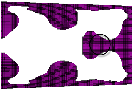 During the interpretation process, the boundaries of the ply shapes are smoothed, and options are available to create separate ply entities for disconnected ply patches and for the treatment of very small ply coverage regions.