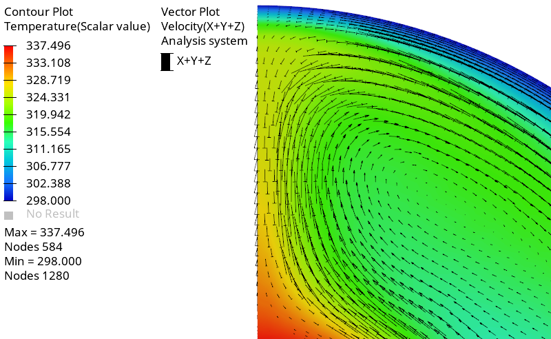 In this tutorial, you successfully learned how to set up and solve a natural convection problem using AcuSolve in HyperMesh. You started by importing the HyperMesh model database and then set up the simulation parameters and boundary conditions. Once the solution was computed, you post-processed the results using HyperView and created a contour plot of temperature distribution across the domain.