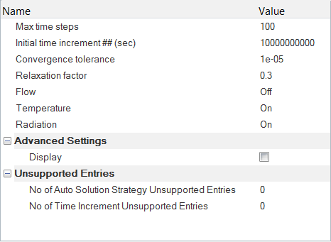 The problem is solved as a steady state case to allow the heat transfer in the solid and fluid regions to reach an equilibrium.