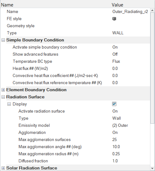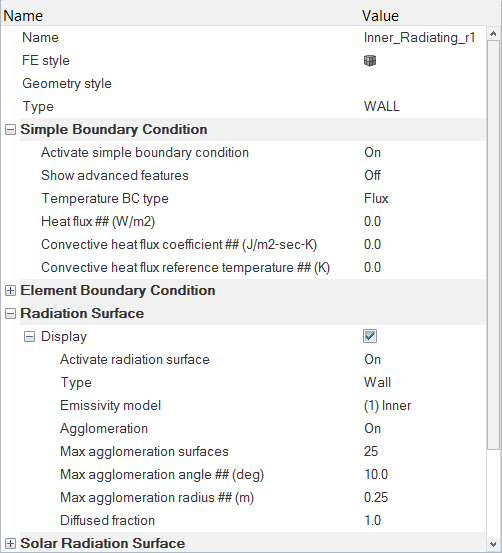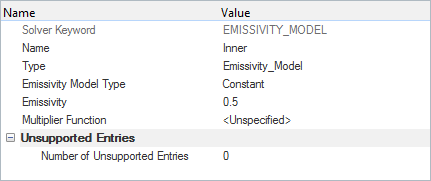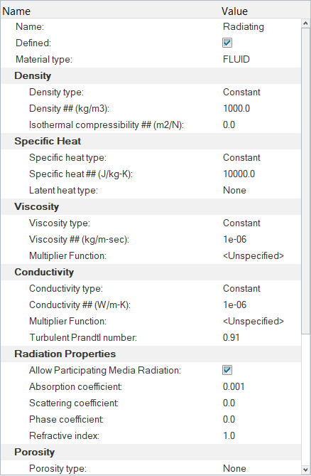 In this step, you will define the radiation parameters i.e. emissivity models, surface boundary conditions for the problem, and assign material properties to the fluid and solid regions.