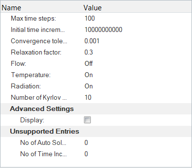 The problem is solved as a steady state case to allow the heat transfer in the solid and fluid regions to reach an equilibrium.