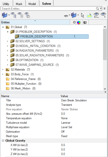 In this step, you will start by creating a node-set for assigning nodal initial conditions for volume fraction. All the nodes in the set are assigned a volume fraction of 1 for water, thereby creating a water column.