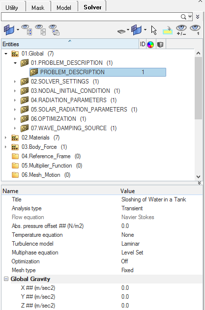 Prior to running through this tutorial, copy HyperMesh_tutorial_inputs.zip from <Altair_installation_directory>\hwcfdsolvers\acusolve\win64\model_files\tutorials\AcuSolve to a local directory. Extract ACU-T4002_SloshingTank.hm and gravity.c from HyperMesh_tutorial_inputs.zip.