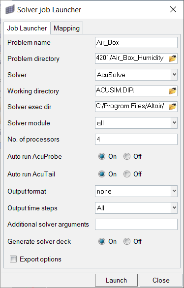 Prior to running through this tutorial, copy HyperMesh_tutorial_inputs.zip from <Altair_installation_directory>\hwcfdsolvers\acusolve\win64\model_files\tutorials\AcuSolve to a local directory. Extract ACU-T4201_Air_Box.hm from HyperMesh_tutorial_inputs.zip.