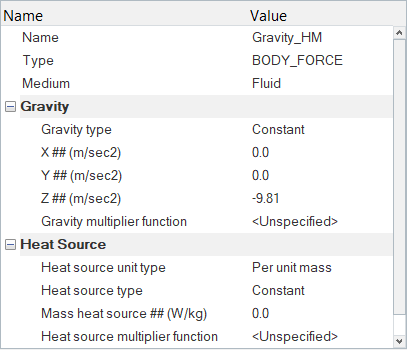 In this step, you will define the material properties for the problem and assign body force to the fluid volume.