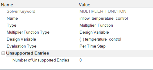 In HyperMesh, multiplier functions are used to scale values of certain parameters at runtime. For example, viscosity of a fluid may vary with temperature. Or inflow rate or temperature may vary over time.