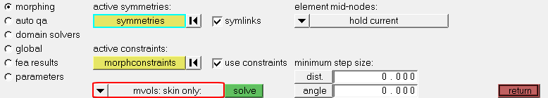 HyperMorph is used to parameterize the shape of the design. You will create morph shapes by moving the surface nodes. The volume nodes will be taken care of using the interpolated mesh motion feature of HyperMesh.