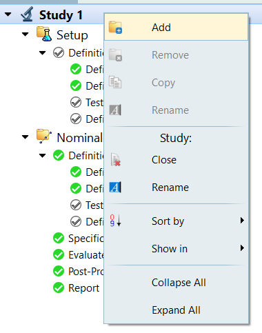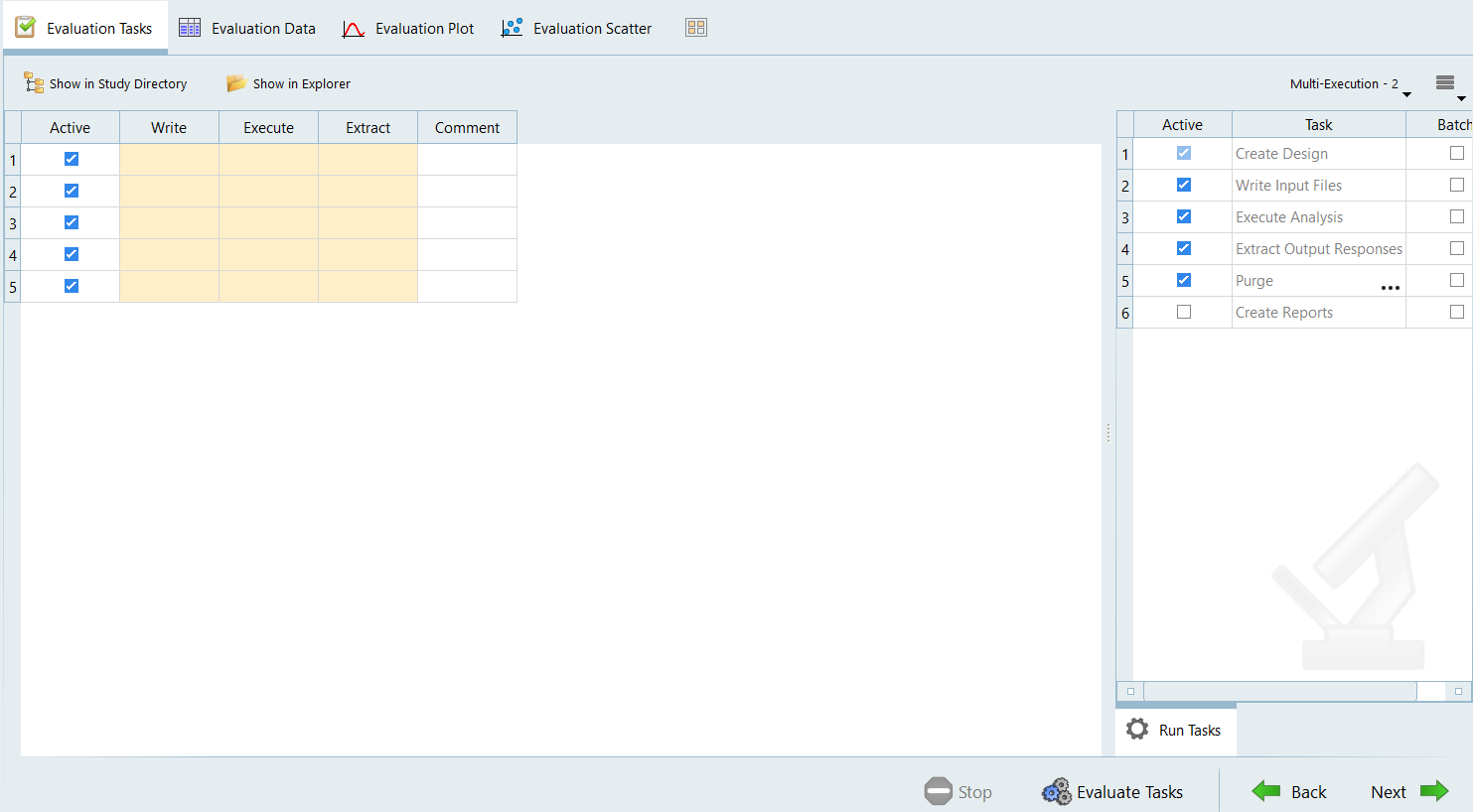 In the HyperStudy window, check step by step by clicking on each setup from the Explorer menu to ensure that everything was properly defined.