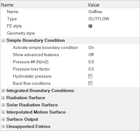 By default, all components are assigned to the wall boundary condition. In this step, you will change them to the appropriate boundary conditions and assign material properties to the fluid volumes.