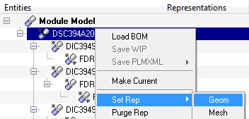 Currently, Bill-of-Material (BOM) file support is limited to PLMXML assembly files from Teamcenter. For more details on the required Teamcenter configuration, supported PLMXML file formats, and supported transfer modes, contact your local Teamcenter support. Once the necessary configuration is made in Teamcenter, you can import the file in HyperMesh for representation management, batch meshing, connectors, and exporting the meshes and solver files.