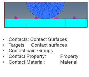 - Starting in HyperMesh 14.0.130, both contact and target regions are identified as CONTACT SURFACES. A pair of contact and target surfaces which interact with each other in analysis are GROUPS. You need to create contact surfaces for both CONTACT and TARGET regions. They will then be paired together under groups to successfully define the contacts. ANSYS solver files (*.cdb files) with contacts are imported into HyperMesh, and identify the contact regions from the contact elements to show the regions as contact surfaces. Contact pairs can be seen in groups.