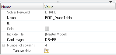 Once the Drape Estimator has finished generating the drape data, HyperMesh creates a drape table for each selected ply inside the Table folder in the Model Browser.