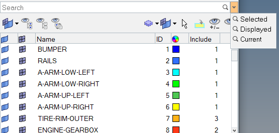 Use the Part Browser to create, organize and manage the CAE part structure/hierarchy.