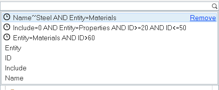 Clicking Remove removes the selected search string from recent history.