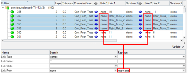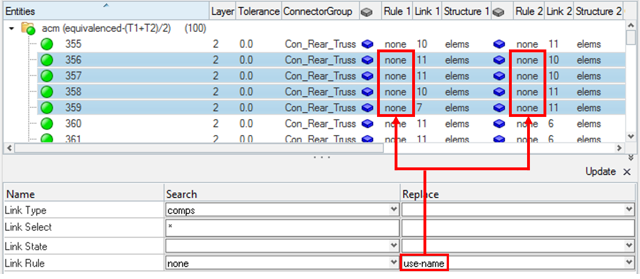 Adding a link with the ID or name rule forces the connector to retain the link’s ID or name even if that link entity no longer exists in the database. Adding a link with the at fe-realize rule ensures that each time a connector is realized the closest entity of the correct type is found and connected.