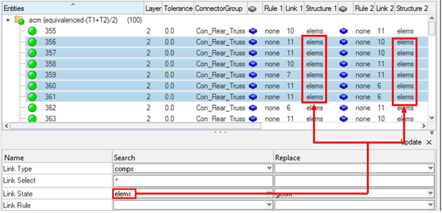 Add links (component, assembly, surface, element, tag, node) at a time to one or more connectors using the Add Link option.