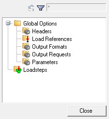 | Edit options | Depending on the entity selected, this will bring up an appropriate GUI for editing of the loadstep or control card information. |