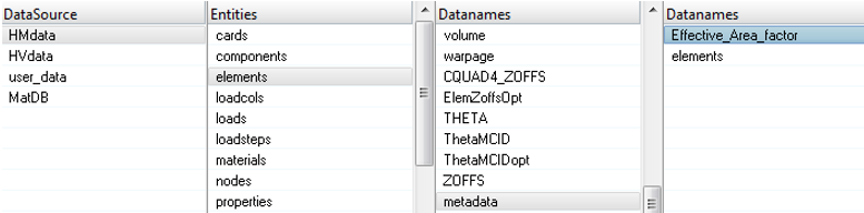 Derived data is not stored in HyperMesh data. It is calculated by a procedure predefined by the Matrix Browser to calculate useful data from HyperMesh data. You can create these Tcl procedures and store them in the Matrix start up. They will show up in the browser as derived_datanames. The pre-installed derived_datanames are width, height, radius and adjacent.