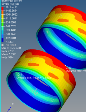 When you query max/min results for component/sets/material /property, HyperMesh will search the max/min values for the elements in that component and provide single values and the element ID/load case ID where that values occurs.